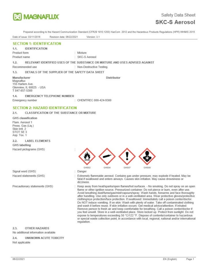Keep away from heat/sparks/open flames/hot surfaces -No smoking. Do not spray on an open flame or other ignition source. Pressurized container: Do not pierce or burn, even after use. Avoid breathing dust/fume/gas/mist/vapor/spray. Wash hands, forearms and face thouroghly after handling. Use only outdoors or in a well-ventilated area. Wear protective gloves/protective clothing/eye protection/face protection. If swallowed: Immediately call poison center/doctor. Do NOT induce vomiting. If on skin: Wash with plenty of water. Take off contaminated clothing and wash it before reuse. If skin irritation occurs: Get medical advice/attention. If inhaled: Remove person to fresh air and keep comfortable for breathing. Call poison center/doctor if you feel unwell. Store in a well-ventilated place. Store locked up. Protect from sunlight. Do NOT expose to temperatures exceeding 50 C/122 F. Dispose of contents/container to hazardous or special waste collection point, inaccordance with local, regional, national and/or international regulation.